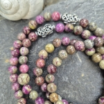 Perles 6 mm,  (Grade A, très belle qualité) intercalaires plaqué argent fin vieillis. Monté sur fil de soie blanc cassé.